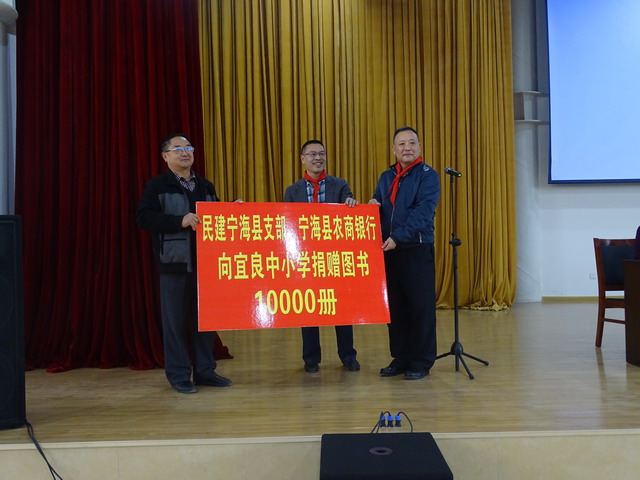 12月16日,时逢中国民主建国会成立71周年,民建宁海支部一行16人在支部主委王鸿飞的带领下前往云南省宜良县开展赠书助学公益活动,宁海县委统战部副部长蒋敏同行。16日下午在宜良县清远小学举行了隆重的赠书仪式,宜良县委常务副县长马明良出席活动并致辞。此次助学活动得到了支部会员的积极响应和宁海县农商行的大力支持,三天时间募集到书资20万元,支部购置了近一万册书籍赠予宜良县清远小学。 开展公益助学活动,弘扬民建同心的精神,向71周年纪念日献礼!