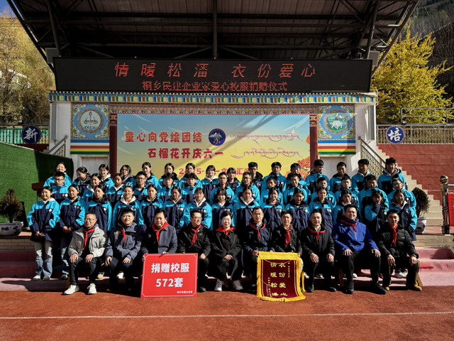 桐乡民建基层委主委钟华在讲话中表示:“此次,桐乡民建企业家为七一藏文中学的同学们带来了一批崭新的校服。这不仅仅是一份物质的馈赠,更承载着桐乡民建全体会员对藏族同胞、对民族教育、对同学们未来的深切关怀与美好祝愿。我们深知,一套合身的校服,不仅代表着整齐划一的校园风貌,更承载着尊严、纪律与集体荣誉感。我们希望,这份源自江南水乡的微薄心意,能够为高原的校园增添一抹亮色,能够让同学们在求学路上,感受到来自社会各界的温暖与鼓励,以更加昂扬的姿态,专注于学业,健康快乐地成长!”