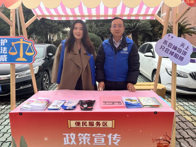 活动在大榭街道金海岸社区办公大楼前小广场举行。支部作为协办单位,活动中专门设立了政策宣传摊位,重点开展反诈、禁毒、垃圾分类等主题宣传,由支部委员刘军威牵头负责。活动现场,在主委陈奇科的带领下,刘军威和入会积极分子袁子晴一行向社区居民发放了宣传资料,耐心解答群众关于金融理财方面的业务咨询,通过形象生动的语言向社区居民普及有关知识。同时,大家还积极参与社区组织的新年送祝福等互动活动,通过与居民面对面地交流沟通,不仅倾听到了社情民意,也传递了民建组织的关怀与温情。