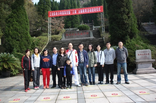 柳丝吐烟临清明,桃花杜鹃正开时。缅怀烈士朱洪山,专程凭吊祭英魂。2015年3月28日上午,民建江北综合总支部组织所属三个支部的会员代表在主委袁奕琳的带领下,到慈城慈湖之畔的烈士陵园,凭吊朱洪山等烈士英魂。