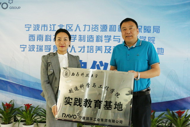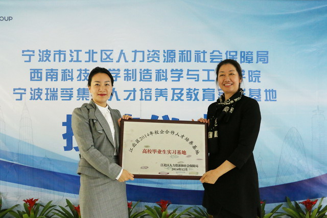 4月16日上午,宁波民建会员企业瑞孚集团与西南科技大学校企合作签约授牌仪式在集团培训室内隆重举行。集团总裁相琼颖、江北区人力资源与社会保障局副局长李秀琴、西南科技大学制造科学院工程学院院长蔡勇、副院长贺红梅等领导出席了仪式,大会就产学研相结合,企业与高校人才培养模式等问题做了深入的交流。