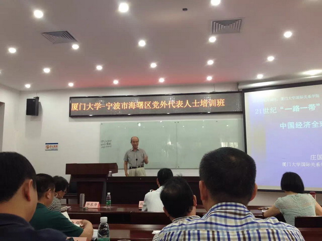 6月16日-19日,民建海曙总支部曹云、佘志敏、孔林锦、陆孟匀4名会员参加了在厦门大学举办的海曙区2015年党外代表人士培训班。海曙区委副书记、政法委书记毕东华出席开班仪式并讲话,区政协副主席、区委统战部部长赵剑光主持开班仪式。