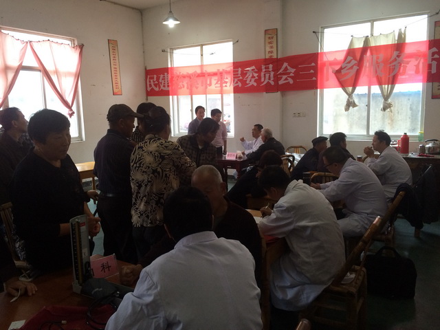 此次活动为民建慈溪市基层委员会共建村龙头场村提供医疗、科技和文艺“三下乡”服务,使共建村成为生产发展、生活富裕、生态良好的美丽乡村。民建10多名医疗、科技专家积极参与,眼科、口腔科、内科、骨科、中医、B超、心电图、量血压等10多个义诊项目,吸引了很多村民前来。“医生,我早上走路的时候腿就会很疼,这是怎么回事啊?”60多岁的张大妈细心地向专家咨询。“大妈,您这是由于年纪大了缺钙引起的。”义诊的骨科高医生了解了张大妈的情况后,对大妈的症状作了诊断,并嘱咐她注意休息和补钙。在针灸科现场,王巨锋会员娴熟拿出银针为几位患颈椎、腰椎间盘等病症的村民针灸治疗,其中一位患腰椎间盘突出症的村民告诉王院长:“三年前在长河卫生院住院经你治疗康复后现在可以干些轻便的活,听说今天你来村里义诊,我特地赶过来想请你检查一下。”王巨锋仔细询问检查,告知注意事项,并要求他定时复查。在村的老年活动中心楼上还开设了临时B超室和心电测试室,不少村民排成一条长长的队伍耐心等待着。除了专家义诊,还向村民提供食品药品安全知识的宣传、农业技术的讲解等。