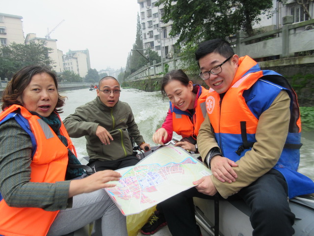 民建海曙志愿服务队队长、海曙总支副主委佘志敏活动前期作了充分的准备工作。进行古航道线路踏勘、情况了解。选定出发、活动、结束地点。商定活动流程、费用支出、人员分工、借船、联系南塘老街管理处等。