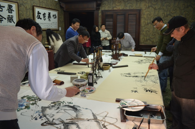 11月26日下午,民建宁波同心书画院举办笔会,宁波市文联党委书记邹大鸣以及知名书画家吴和平、夏军寅、徐斌、史去彪、鲁海波、陈一波等参加活动。宁波市副市长、民建市委会主委张明华出席活动,并与书画家们亲切交谈。 书画家们在同心书画院内,尽情挥洒笔墨,各显神通。大家都觉得这样以笔会友的形式值得提倡,决定以后不定期组织笔会,让同心书画院真正成为大家艺术交流的平台,同时也扩大宁波民建的社会影响力。