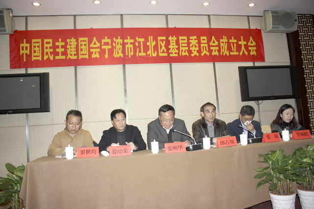 在成立大会上,张雨宣读了基层委员会的选举结果,张明华代表民建宁波市委员会向民建江北基层委员会颁授了印章,罗世均代表新一届委员会作了发言,江北民进和鄞州民建分别代表江北区各民主党派和民建基层组织致辞。