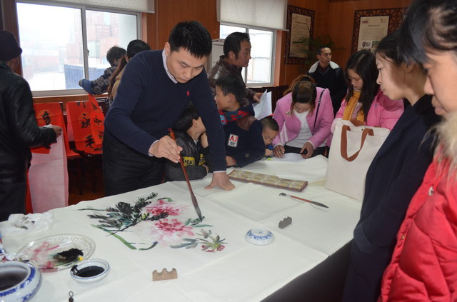 1月10日,宁波民建“墨香贺新春”进北仑活动在北仑新碶街道银杏社区的文化礼堂举行。此次活动由民建宁波市委会主办,宁波同心书画院、北仑区委统战部、民建北仑总支部协办,新碶街道党工委承办。副市长、民建市委会主委张明华出席活动,新碶街道党工委书记朱斌荣,北仑区委统战部常务副部长李亚平,市委会组宣处处长、宁波同心书画院副院长李湘虹,北仑区总支部主委贺波,民建书画家会员家及同心书画院书法培训班学员代表等参加活动。