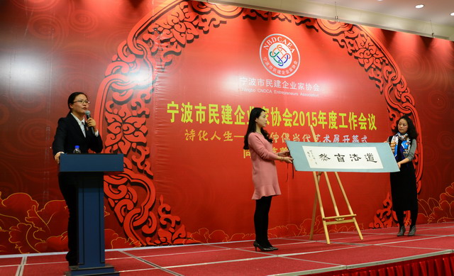 1月16日下午,宁波市民建企业家协会召开2015年度工作会议,会议回顾了协会2015年工作开展情况,并对2016年的工作提交了基本思路。会上还进行了书画作品慈善义拍,拍卖所得善款将捐赠给宁波民建85周岁以上老会员。宁波市副市长、民建宁波市委会主委、市民建企业家协会会长张明华,宁波市政协原副主席、民建宁波市委会原主委、市慈善总会常务副会长、市民建企业家协会名誉会长项性平;宁波市政协原副主席、九三宁波市委会原主委、宁波中华文化促进会主席傅丹,中共宁波市委统战部常务副部长谢群华;宁波市政府副秘书长、市民建企业家协会高级顾问丁海滨;中共宁波市委统战部副巡视员郎占领等出席会议,参加会议的还有民建宁波市委会国宇、姚蓓军、杨丽华,市委统战部相关处室负责人及市民建常委、支部主委,市民建企业家协会副秘书长及广大会员。民建宁波市委会专职副主委兼秘书长张雨主持会议。