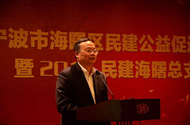 1月15日宁波市海曙区民建公益促进会成立大会暨2016年民建海曙总支年会于15时在凯洲嘉州厅隆重召开。此次大会得到民建市委会、海曙区区府办、海曙区统战部的支持和重视。宁波市副市长、民建宁波市委会主委张明华,海曙区委副书记毕东华,宁波市委统战部副巡视员郎占领,海曙区委常委、统战部部长刘臻,民建宁波市委会专职副主委兼秘书长张雨,民建宁波市委会副主委、海曙区副区长国宇,海曙区政协副主席赵剑光、宁波市委统战部党派处处长钱锋及民建市委会各室相关负责人,海曙区各民主党派主委,民建兄弟支部,总支对口联系单位代表等嘉宾出席了本次大会。