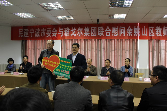 此次活动捐赠的678套工作服由雅戈尔集团提供,经市委会与市红十字会的牵线搭桥,赠送给辛勤工作在第一线的余姚山区教师,市教育局舒月明副局长、受赠山区学校校长代表分别表示了感谢。张雨在讲话中指出,我会多年来一直致力于扶贫帮困、支教助学等社会服务活动,此次能为革命老区的教育事业尽绵薄之力而高兴,并由衷地敬佩长期坚持在山区执教的老师们的奉献精神,希望我会能继续发挥特色和优势,加强与山区教师的联系,为山区的教育工作添砖加瓦。