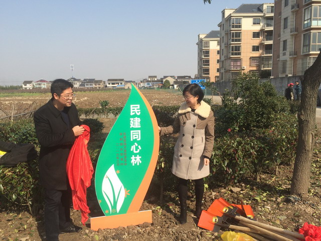 揭牌仪式上,慈溪市委统战部副部长黄建岳向古窑浦村“6S”社会服务示范基地授牌,随后王益女主委、掌起镇党委书记房伟迪、公牛集团副总阮幼平与古窑浦村主任谢国乔分别为“民建同心林”、“公牛共建林”揭牌,最后,大家还种下了象征绿色和希望的树苗。