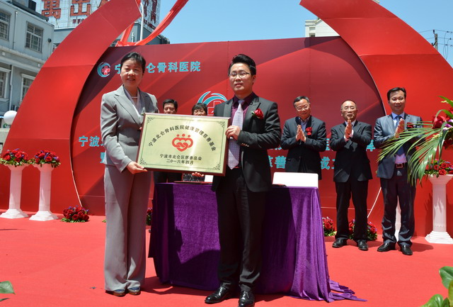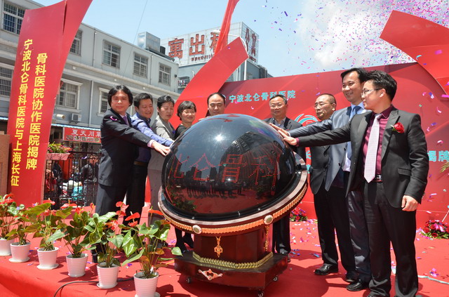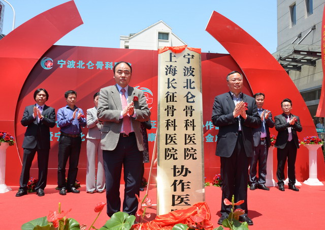 4月30日上午,宁波北仑骨科医院与上海长征骨科医院协作医院揭牌暨宁波北仑骨科医院健康管理慈善基金成立仪式在北仑骨科医院举行,民建宁波市委会主委、副市长张明华,北仑区政协主席刘新华,区委常委、区人武部政委张明,副区长陆亚芬,区慈善总会会长蒋素春,民建宁波市委会副主委张雨、区政协副主席、区委统战部长袁侠,区卫计局长胡峰印,民建北仑区基层委员会主委、区投资合作、招商局长贺波等市、区领导与上海长征医院骨科医院名誉院长兼骨科中心主任肖建如教授、北京301医院骨科副主任医师黄鹏教授、宁波市医学会骨科分会主任委员庞清江教授等有关专家,还有医院全体医务人员及社会各方来宾共三百余人出席了本次仪式。