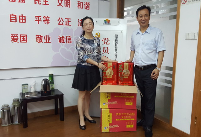 王慧荣在活动小结时表示,他愿意接过接力棒,并紧紧依靠全体会员和社区干部的大力支持,一如既往地把一支部与牡丹社区的对口联系、结对共建活动深入开展下去。同时,因端午节将临,王慧荣向社区捐助五千元,给在社区中居住的老年人、残疾人和贫困家庭等赠送端午节粽子之用。