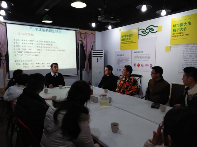课堂上,对宁波地方民俗和传统文化有较深研究的柴隆老师,在教青年们学习宁波话的同时,让大家体验了一把“老底子”宁波的民俗和传统,以生动有趣的方式让青年们对宁波这座城市以及宁波人有更深更多的了解。