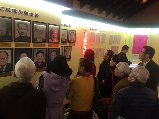 下午来到民建宁波市委会的同心书画院进行参观交流,民建宁波市委会的专职副主委张雨接待了大家。书画院总监柴隆向大家介绍了书画院的情况:书画院坐落于蕴藏了千年宁波文化的鼓楼旁,是上海知名甬商的私家宅邸经过修缮进行改建的。书画院由民建宁波市委会主办,自2015年6月开馆以来已经为广大文化艺术爱好者提供艺术鉴赏、跨界交流、学术研讨等许多活动,是民建宁波市委会社会服务职能的一个有效延伸领域。大家饶有兴趣地参观了这座具体民国韵味的古老建筑,不时在房间一隅拍照留恋。大家还对宁波民建的会史馆进行了参观。