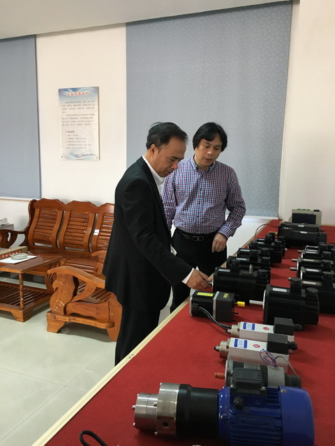 在宁波北仑恒峰电机制造有限公司,郭吉丰详细了解了企业新产品的研制开发,客户需求与市场拓展情况,在现场察看了与浙江大学合作研发的高效伺服电机进展情况。北仑区中小企业服务中心主任、北仑四支部主委、北仑恒峰电机制造有限公司董事长翁雪峰就有关情况做了详细的汇报,并与郭吉丰就一些技术问题做了交流。