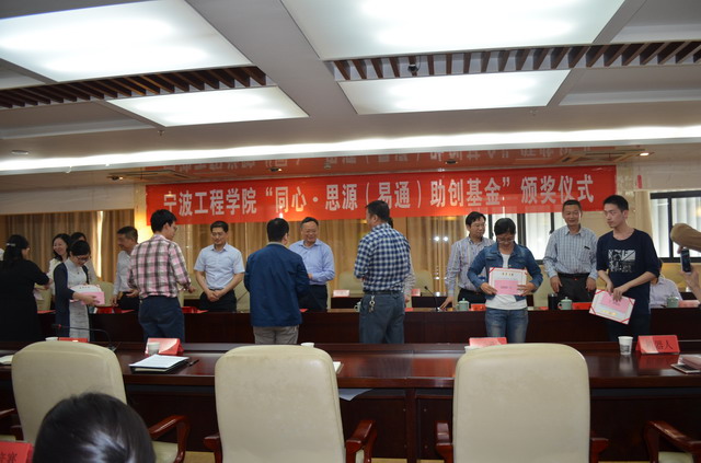 “同心•思源(易通)助创基金”成立于2016年12月,由宁波易通建设有限公司出资100万元设立,委托民建宁波市委会“同心•思源”慈善基金共同管理,定向捐赠给宁波工程学院用于创新团队学科竞赛奖励。