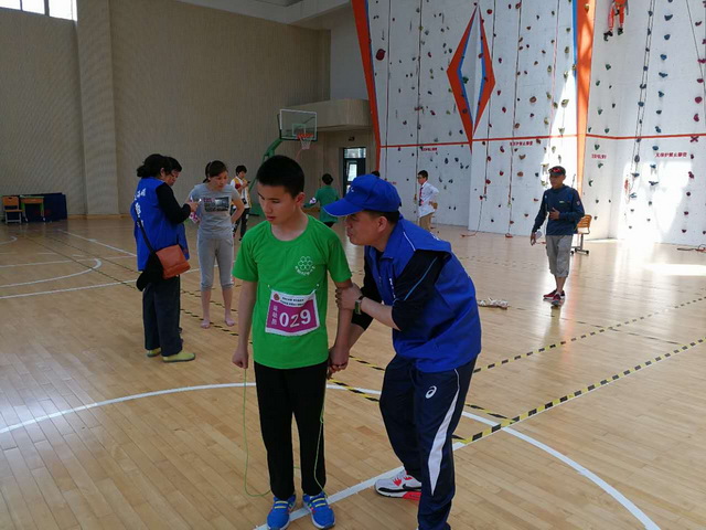 此次运动会倡导盲人朋友走出家门,融入社会,有跑步、跳远、跳绳、拍篮球等,30多位盲人参加了这个运动会。民建志愿者们为盲人引路、递球、捡绳子、系鞋带......忙得不亦乐乎。