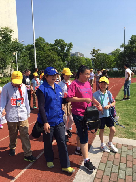 5月21日是全国助残曰。海曙三支部组织会员一大早来到了宁波新城第一实验学校小学部体育馆,参加由浙江星梦服务队主办的盲人趣味运动会,作为民建志愿者为盲人保驾护行。