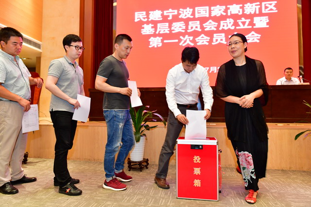 经民建高新区基层委员会第一次会员大会选举产生了基层委员会第一届委员,沈颖程当选为基层委员会主委,陈江、毛莹、杨秋、邱军当选为副主委,孙斌、朱艳婷、杨慧炜、胡威徽当选为委员。大会还同时选举产生了四个支部委员会,胡芳、李贤珍、刘优君、谢志铭分别当选为支部主委。张明华主委为民建高新区基层委员会及下属四个支部授印章。随后沈颖程作表态发言,他表示新一届基层委员会将团结一致,奋发图强,积极进取,紧紧围绕宁波市、高新区及民建的中心工作,在建设高素质参政党基层组织上迈出新步伐。民建鄞州区基层委员会主委王丽萍,九三学社宁波市市委会副主委、九三学社高新区支部主委童文俊分别代表民建兄弟县市区基层组织和高新区兄弟民主党派基层组织对民建高新区基层委员会的成立表示祝贺。