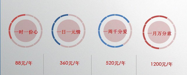 广泛开展扶贫、帮困、助学等各类公益活动是宁波民建的优良传统。自换届以来,市委会积极创新公益手段,突破以往慈善资金主要来源于会员企业家的做法,推出了携手献爱心微公益众筹活动,通过各基层组织发动广大会员投身到人人献爱心、人人助公益的行列中来,携手接力,传递爱心,为树立宁波民建良好的社会形象发挥每一位会员的力量。筹款分四档供会员自愿选择:一时一份心、一日一元情、一周千分爱、一月万分意。即一小时奉献一分钱,一年共计88元;一天奉献一元钱,一年共计360元;一周奉献10元钱,一年共计520元;一月奉献100元,一年共计1200元。