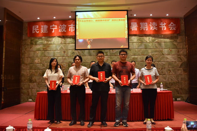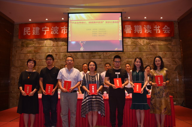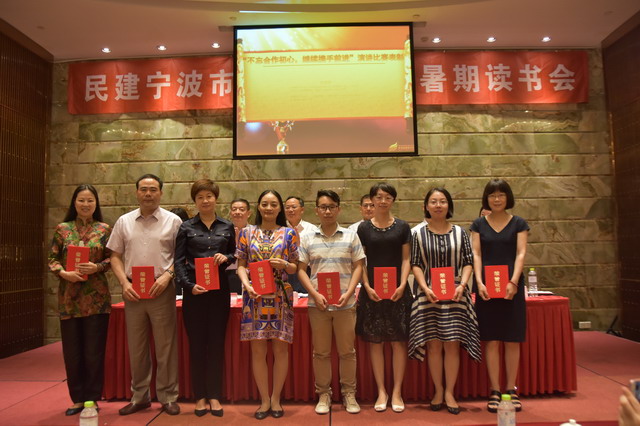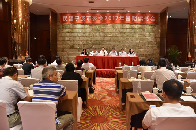 8月18日,民建宁波市委会组织召开了2017年暑期读书会,宁波市政协副主席、民建宁波市委会主委张明华,副主委张雨、徐平炬、陈彩凤,巡视员王伯宁,秘书长兼组宣处处长李湘虹,市委统战部妇委会主任杨鸣琦出席会议。市委委员及全市各基层组织代表参加了学习。