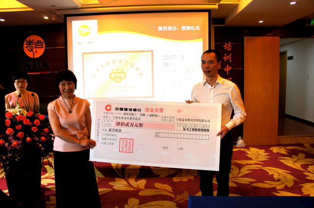 8月25日,宁波麦谷餐饮管理有限公司在成立六周年之际,建立了规模为42万元的宁波麦谷慈善基金。公司总经理、郑记粥铺创始人、民建北仑四支部会员郑永光先生与北仑慈善总会签订了有关捐赠文件。