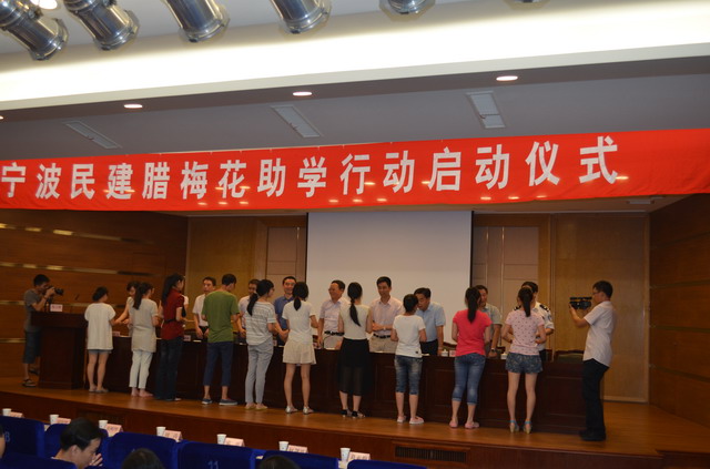 8月20日,民建宁波市委会腊梅花助学行动在慈溪中学召开。50名家境贫困的慈溪大一新生得到捐助。自腊梅花行动2013年在奉化启动以来,相继在宁海、鄞州、慈溪开展,共已帮助200名学子顺利迈进大学校园。