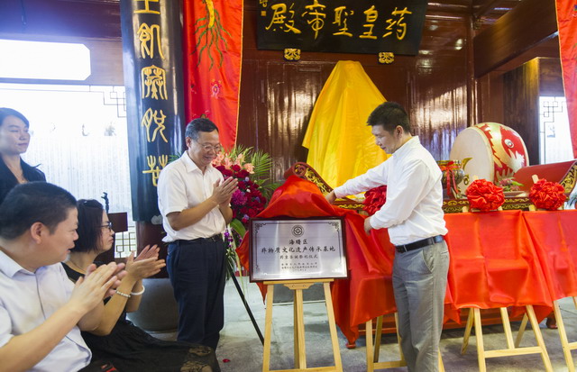 9月15日,有着300多年历史的天一广场药皇殿经过一年多“修旧如旧”修缮工程,在九下鸣鼓声中重开山门、悬壶济世。市政协副主席张明华以及医学、文保部门负责人等出席重开山门庆典,并为药皇殿成为海曙区非遗项目“药皇圣诞祭祀仪式”传承基地和上海中医药大学附属上海市中医医院中医药学术培训基地揭牌。