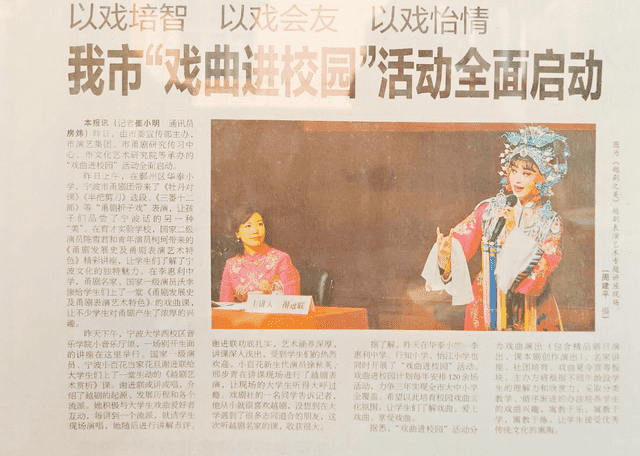 2017年12月10日,宁波日报第三版文体新闻版报道了民建宁波市区五支部会员——国家一级演员、宁波市戏剧家协会副主席、宁波小百花越剧团副团长(吕派当家花旦)谢进联参加市委宣传部主办的以戏培智以戏会友以戏怡情“戏曲进校园”活动。