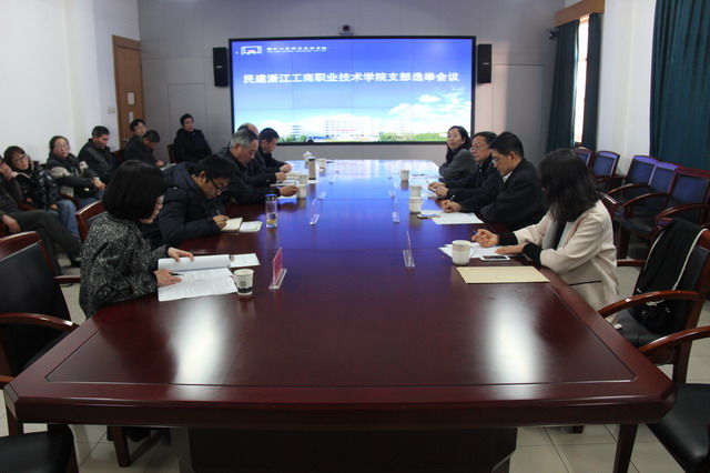 1月22日下午,浙江工商职业技术学院支部第三次会员大会在学院至诚楼201召开。市委会主委张明华、专职副主委张雨、秘书长李湘虹等领导出席会议,学校党委书记蔡泽伟、党委副书记俞位增、党委委员兼统战部部长谢骏等到会祝贺。