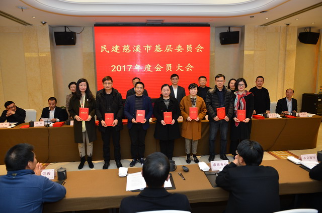 王益女作工作报告。2017年,民建慈溪市基层委员会在中共慈溪市委和民建宁波市委会的领导下,围绕中心,服务大局,加强自身建设,积极参政履职,努力服务社会,各项工作取得了可喜成绩。坚持思想建会,以多种形式深入开展“不忘合作初心,继续携手前进”主题教育活动,不断巩固多党合作的共同政治理想信念。继续提升参政水平,通过各类平台积极建言献策,多项参政议政成果被慈溪市委市政府采纳吸收并转化为政策文件;民建集体及会员累计提交人大建议、政协提案共计41件,多件被评为优秀建议提案;全年累计上报社情民意45件,其中中央统战部《零讯》录用1件,民建中央录用3件,省委统战部录用8件,省民建录用27件,录用数量、质量在民建系统中名列前茅。服务品牌打造深入推进,3个会员企业与结对村共建基地被评为慈溪市社会服务6S示范基地和6S基地;全年累计慈善爱心捐助4000余万元,8家会员企业获得慈溪市“慈善之星”、“慈善捐赠先进单位”等荣誉称号;累计开展送医送法送科技到基层服务154人次。进一步加强自身建设,完善会务工作机制,激发各支部、各工委活力,重视会员发展和培养。2017年,民建慈溪市基层委员会被评为宁波民建社会服务先进集体,二支部被评为宁波民建先进支部和信息工作先进支部,其余支部均被评为宁波民建优秀支部;阮立平、徐鹤田、罗立国荣获民建浙江省年度人物提名奖。