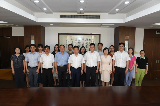 在张明华的陪同下,郑栅洁参观了民建机关,与大家一一握手,并与民建市委会班子成员及全体机关工作人员合影留念。