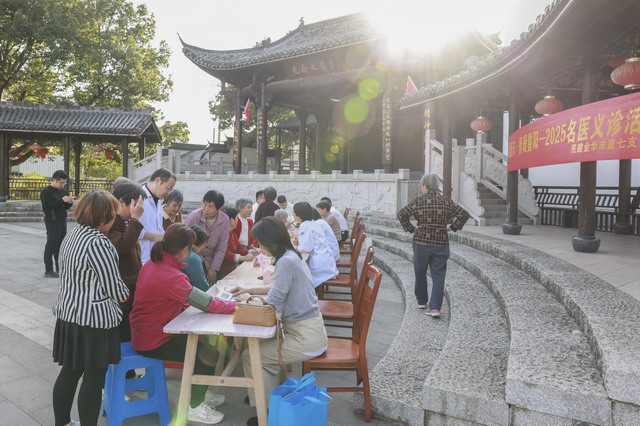 光南大舞台前,金华民建市直七支部的医生会员们“送医下乡”,忙碌不停。现场设置了内科、针灸科、耳鼻咽喉科等,免费为老人测量血压、血糖,细致解答高血压、关节炎等老年常见病疑问。刚刚结束针灸治疗的施奶奶表示:“这样的活动太贴心了,不仅送来慰问品,还能免费看病,心里特别暖。”质朴的话语道出了村民的心声。