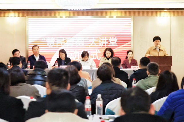 会上还举行了越兴支部发起的“慧民育德”大讲堂启动仪式。越兴支部副主委詹志娟作动员宣讲。“慧民育德”大讲堂立足于服务会员企业职工,由专业团队授课指导,助力营造良性亲子关系,为企业和社会的和谐发展注入正能量。